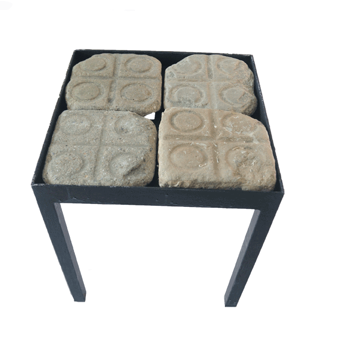 Small handcrafted side table made of varnished iron, designed to hold four Panots. Finished with a transparent glass top that showcases the tiles. You can choose the models, and we will prepare the table for you.