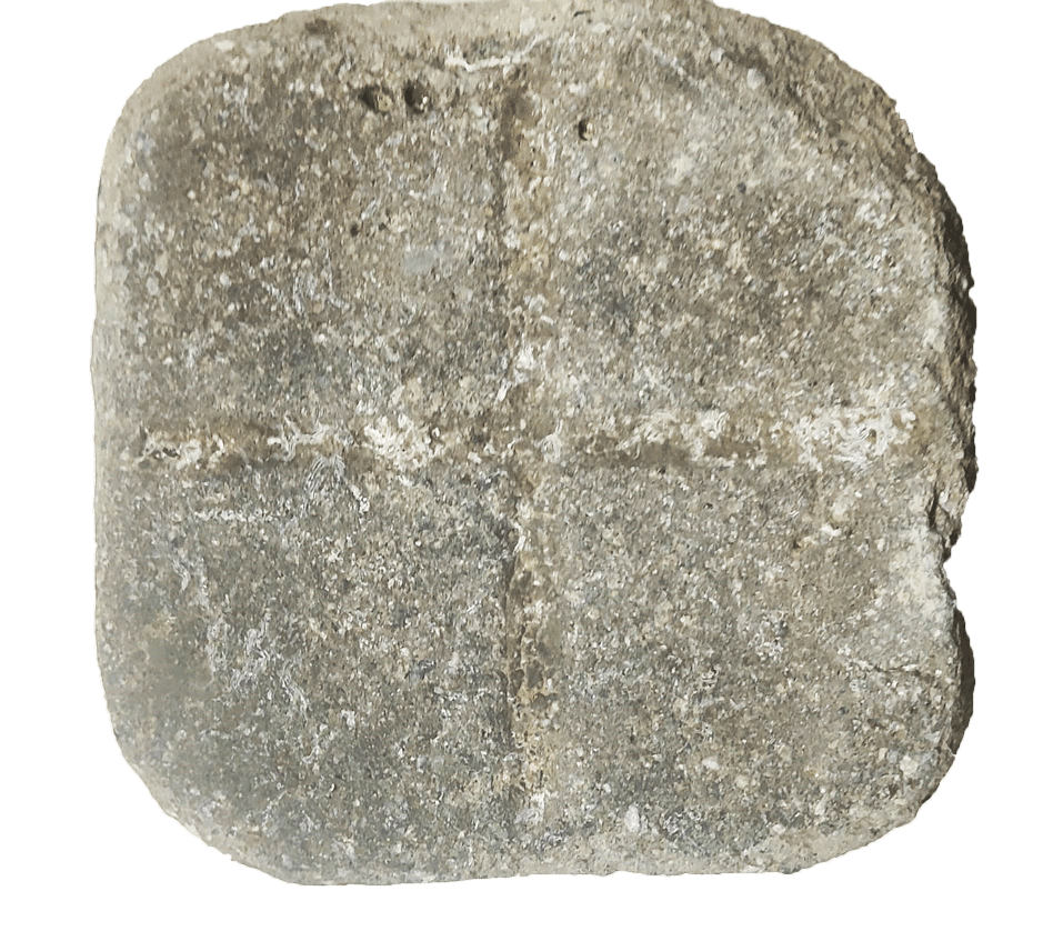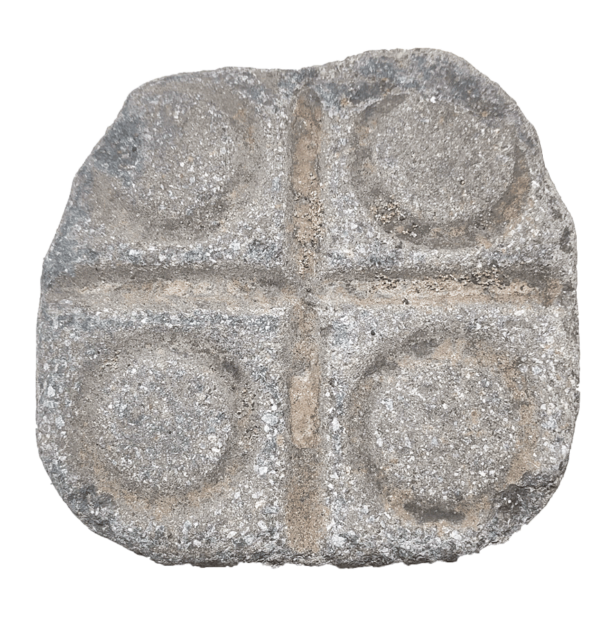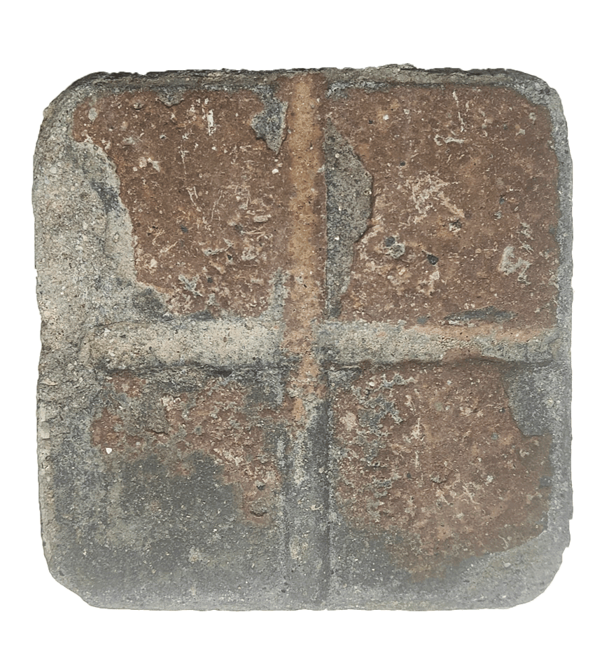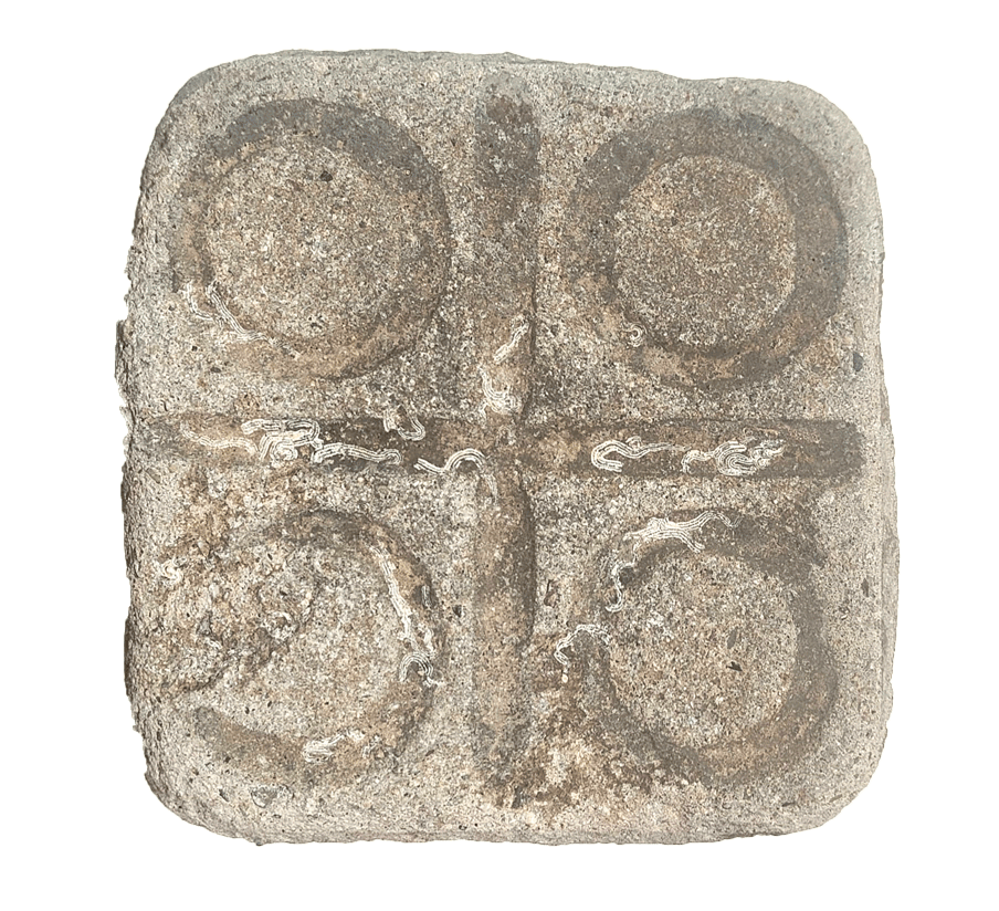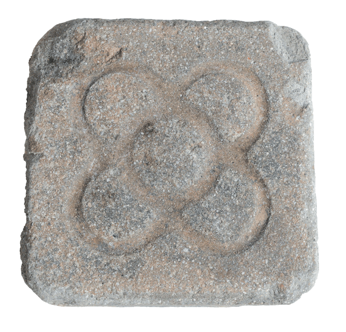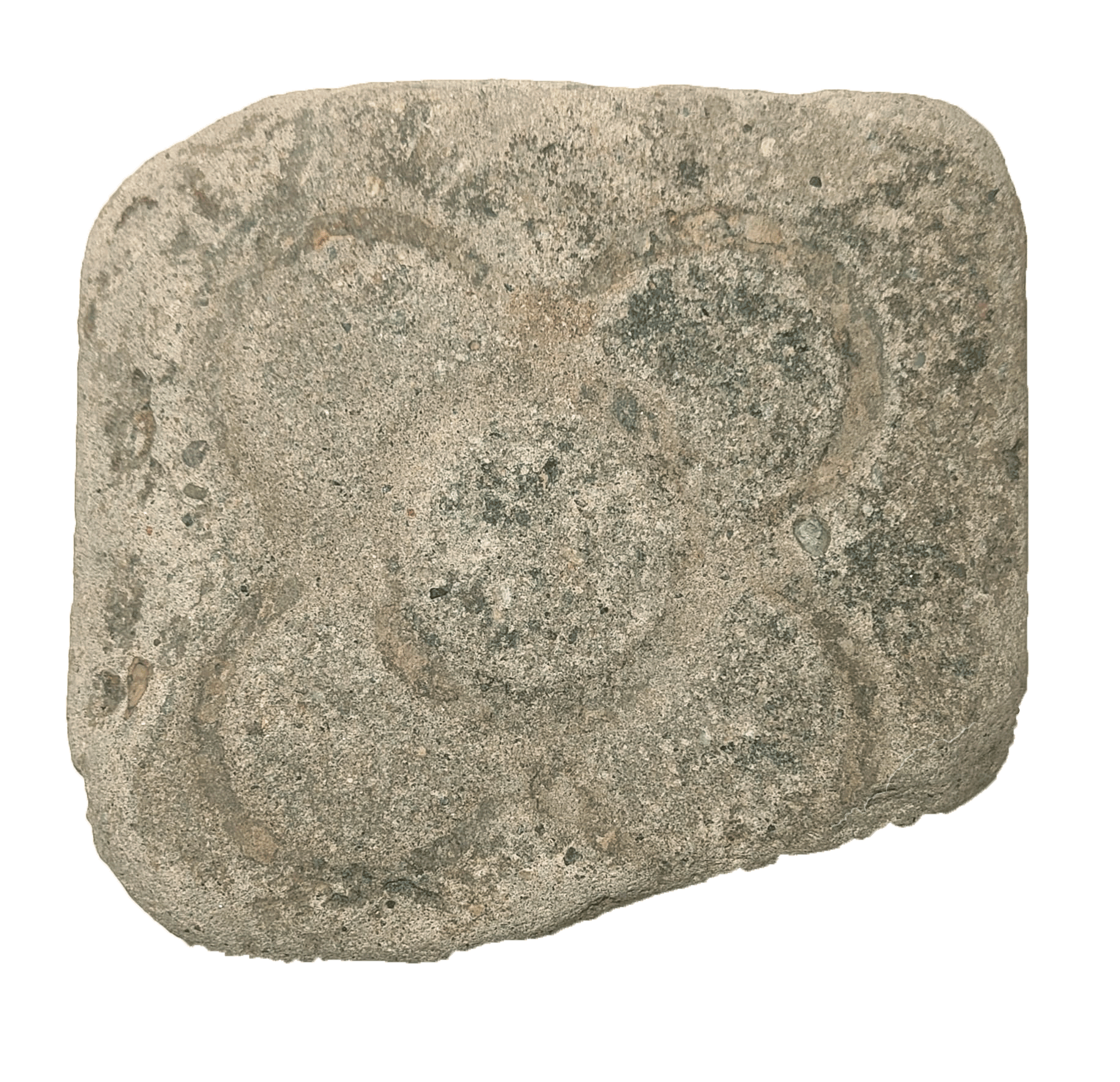 Historic Barcelona Panot, carefully reclaimed from the waters off the city’s coast, displaying the classic Tauleta design with inner circles. Corners show moderate general wear. Almost complete loss of the circle design, with the Tauleta still preserved.