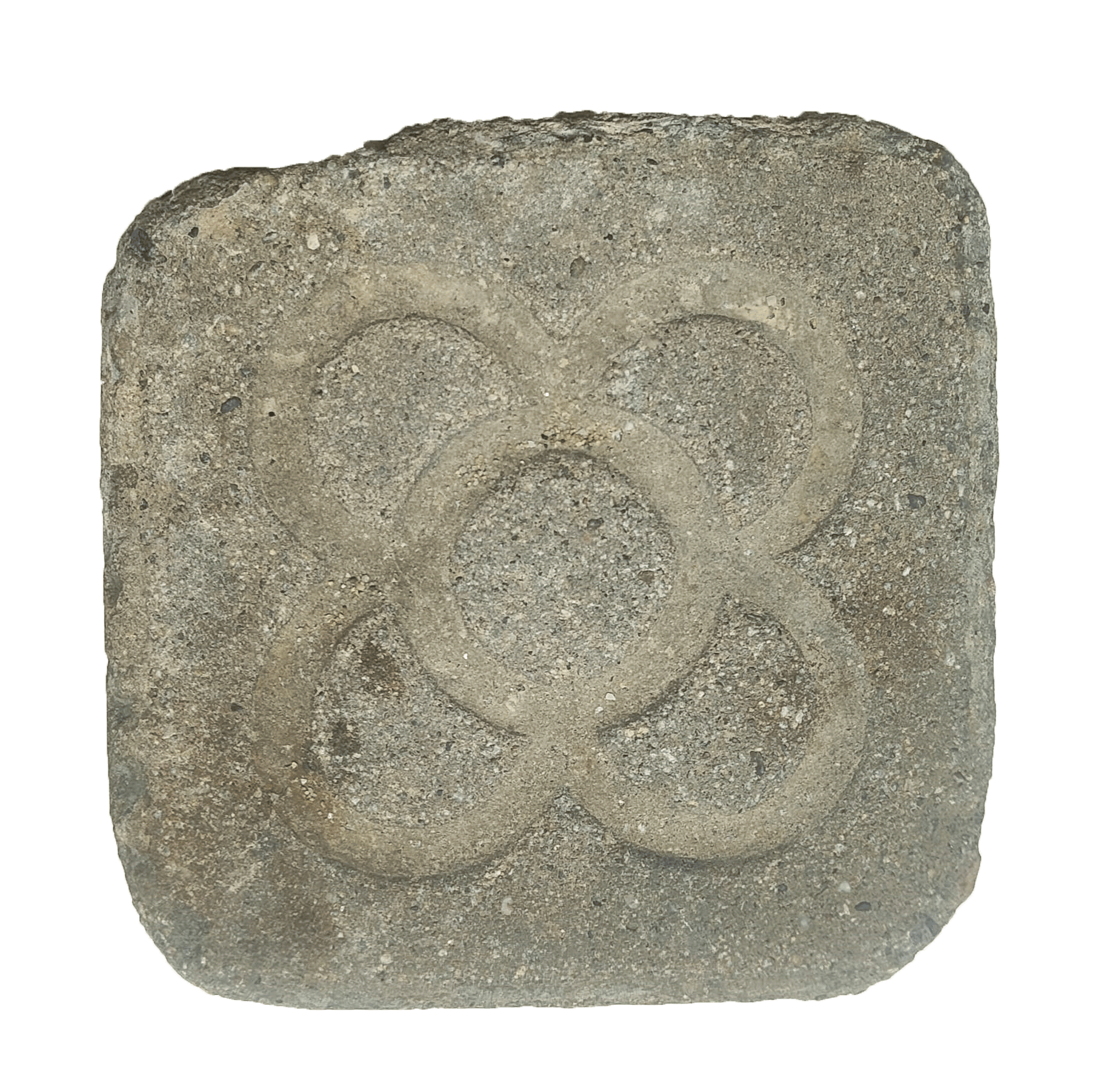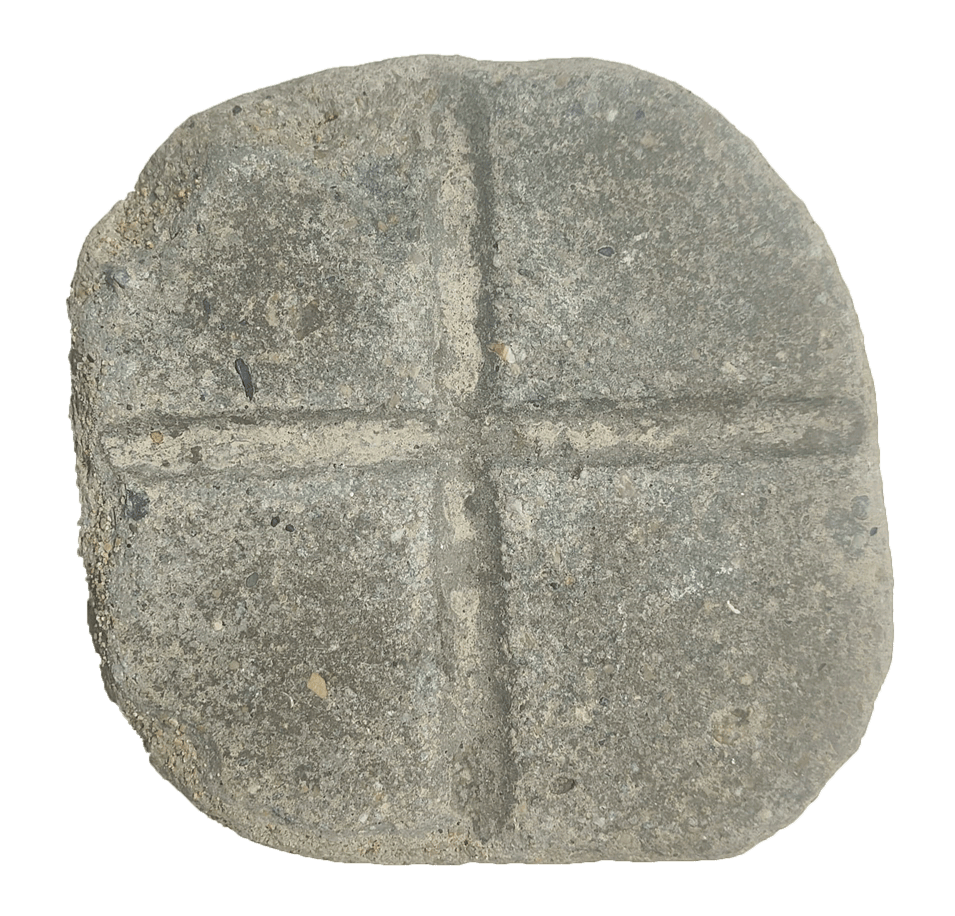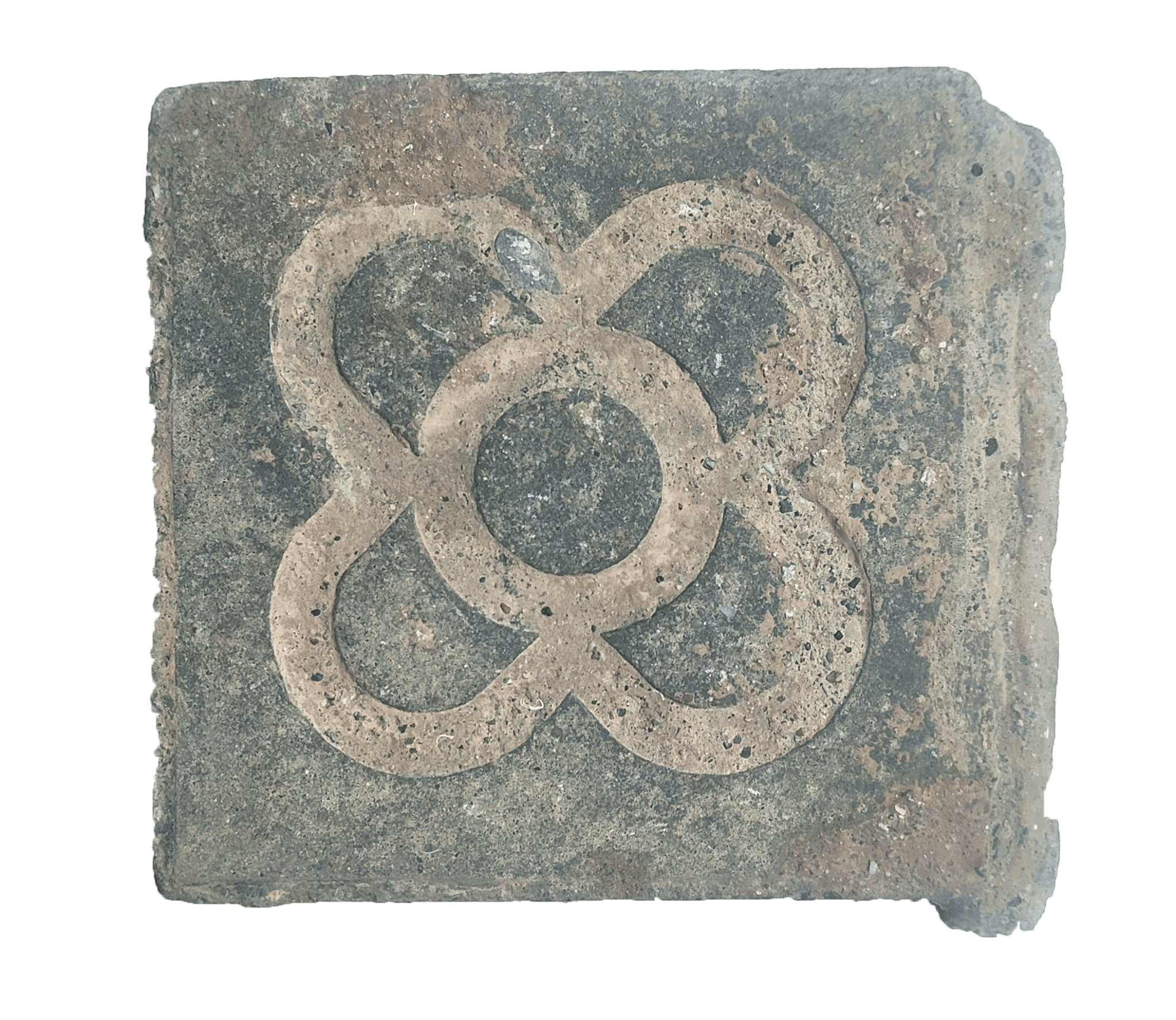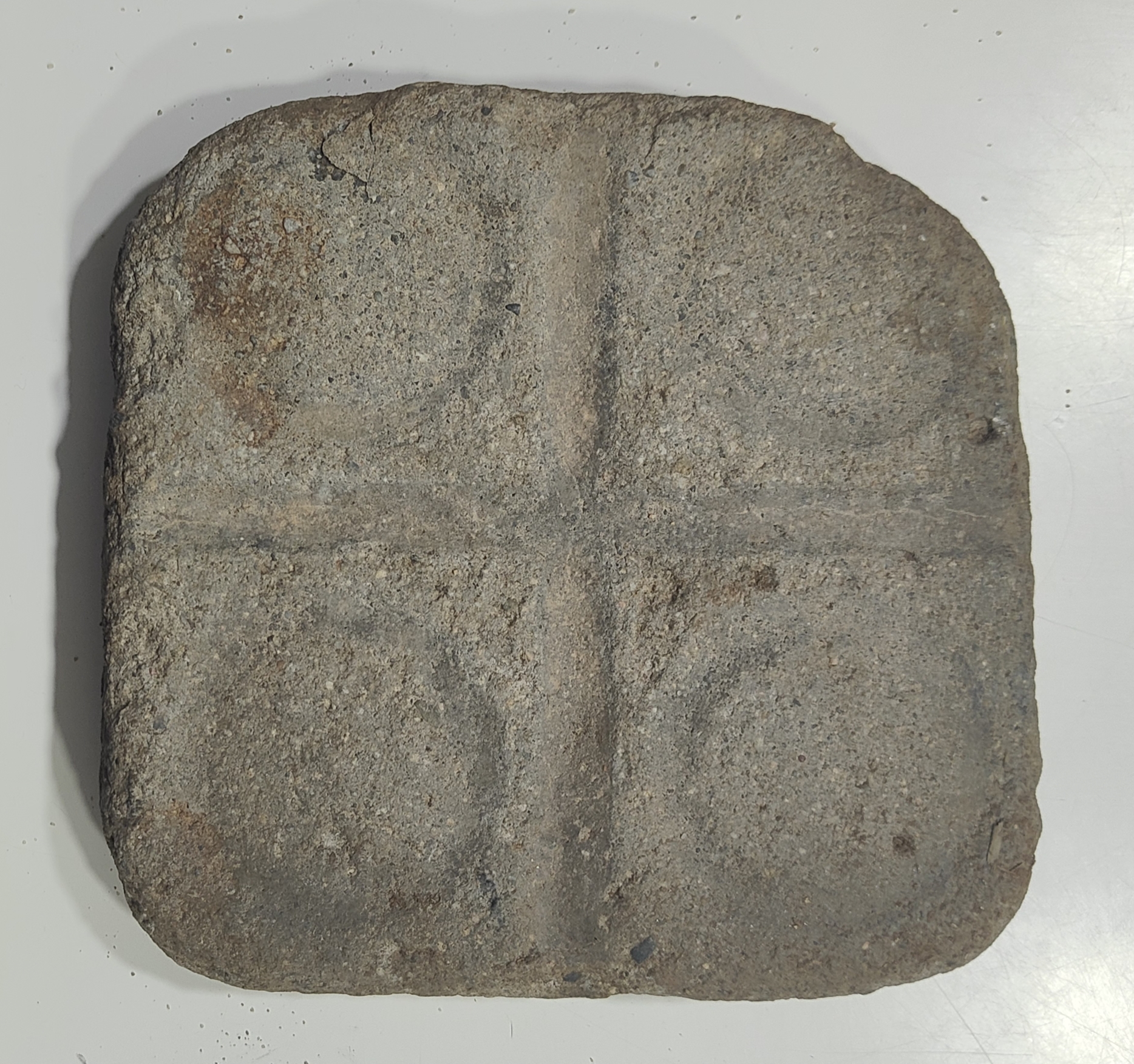 Historic Barcelona Panot, carefully reclaimed from the waters off the city’s coast, displaying the classic Tauleta design with inner circles. Corners show moderate general wear. Almost complete loss of the circle design, with the Tauleta still preserved.