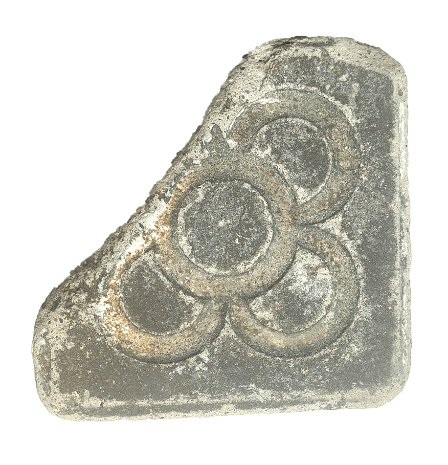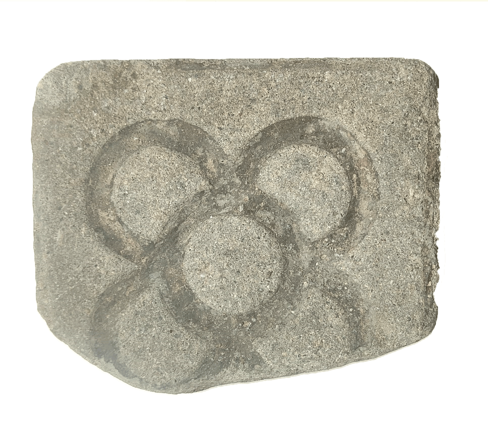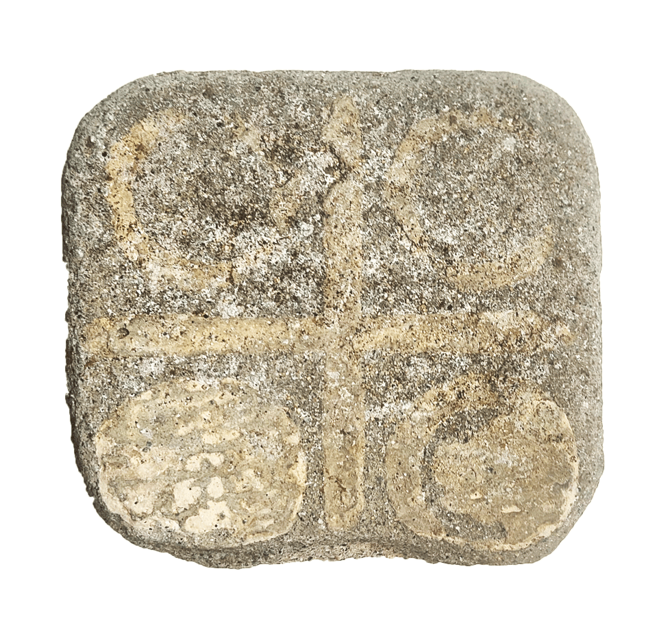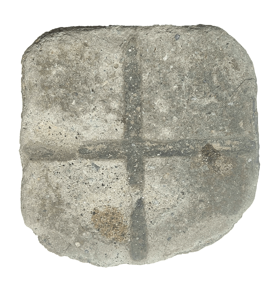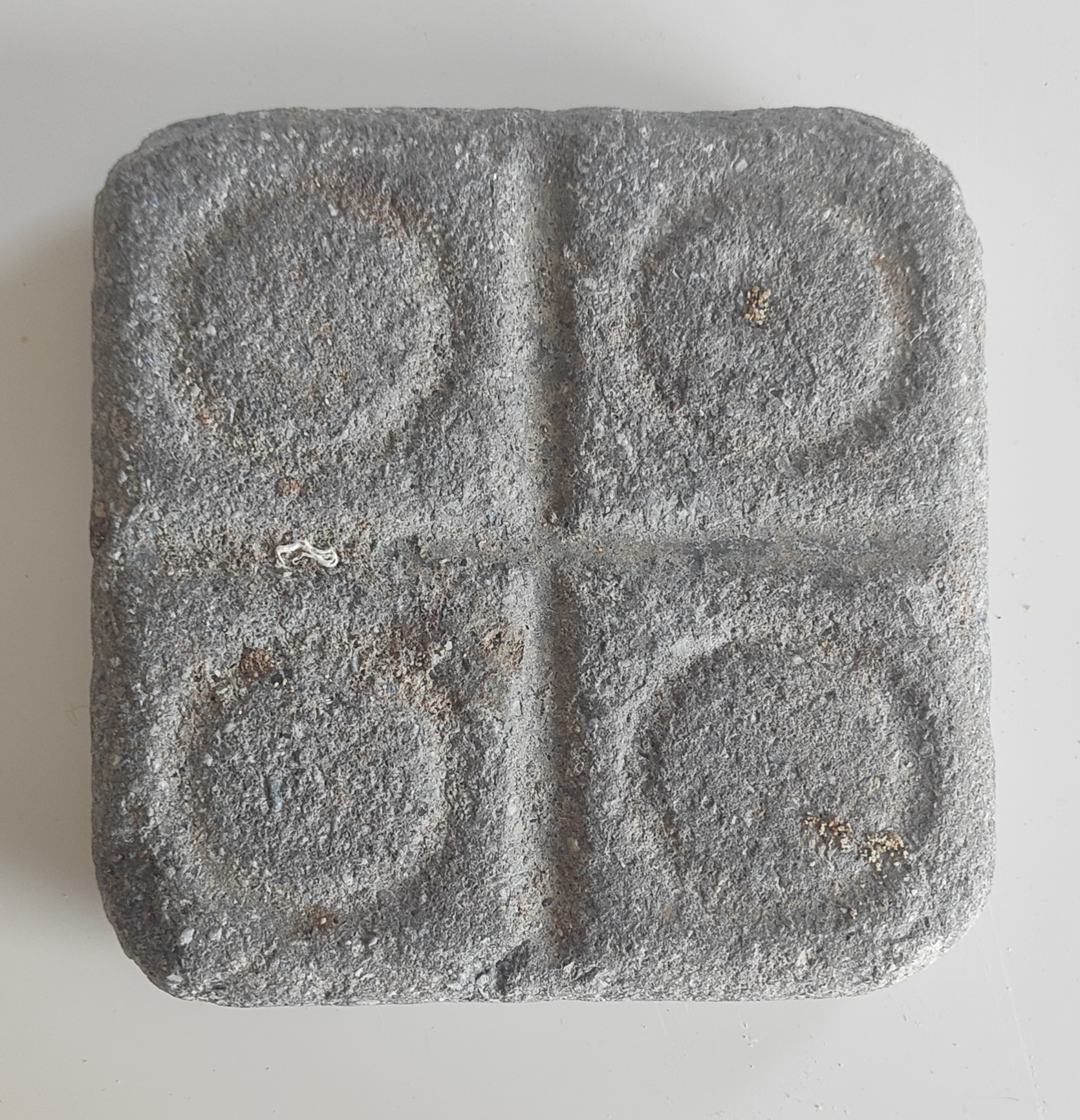 Historic Barcelona Panot, carefully reclaimed from the waters off the city’s coast, displaying the classic Tauleta design with inner circles. Corners show moderate general wear. Almost complete loss of the circle design, with the Tauleta still preserved.