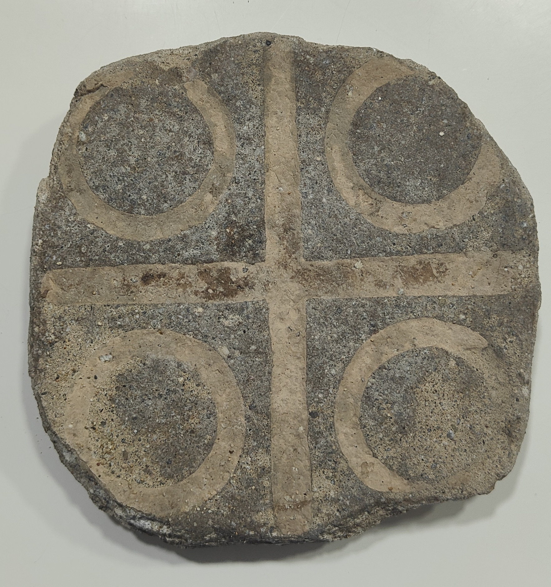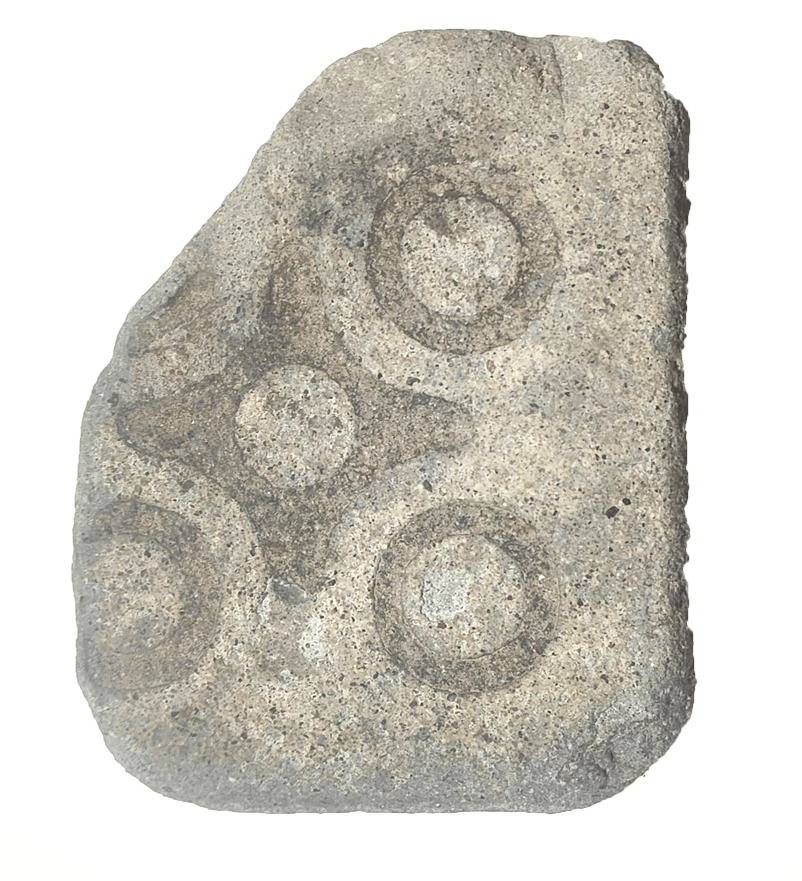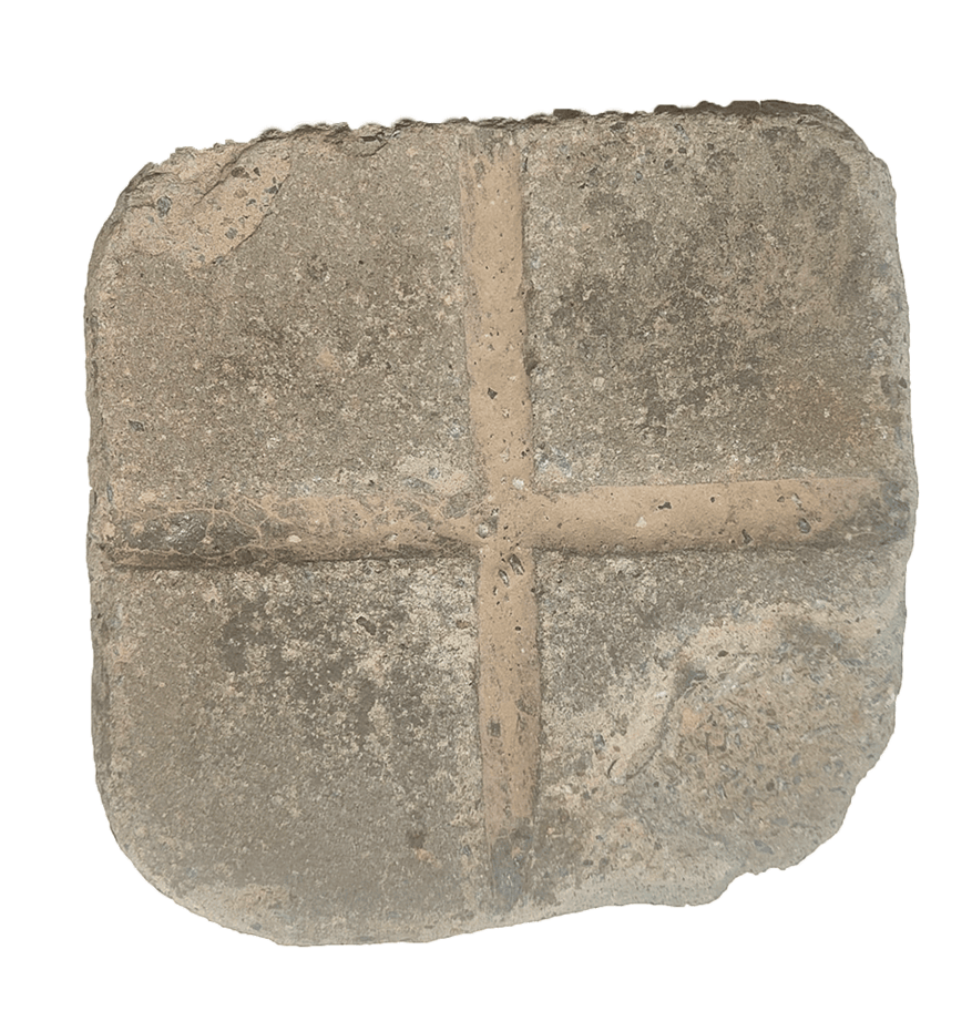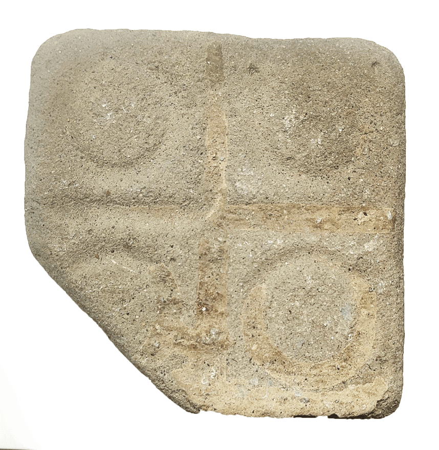 Recovered Panot from Barcelona’s shores, showcasing the distinctive Tauleta pattern with inner circles. The corners bear the marks of time with general wear. Small wear on the lower left part affecting the design