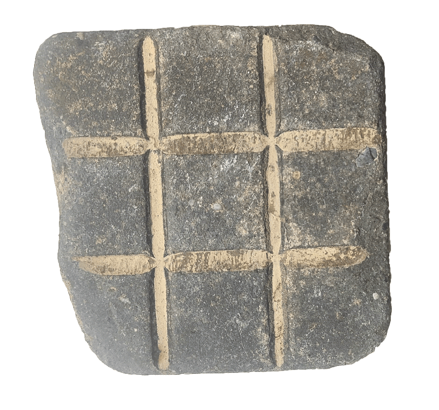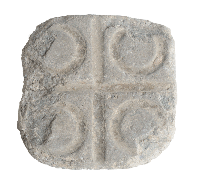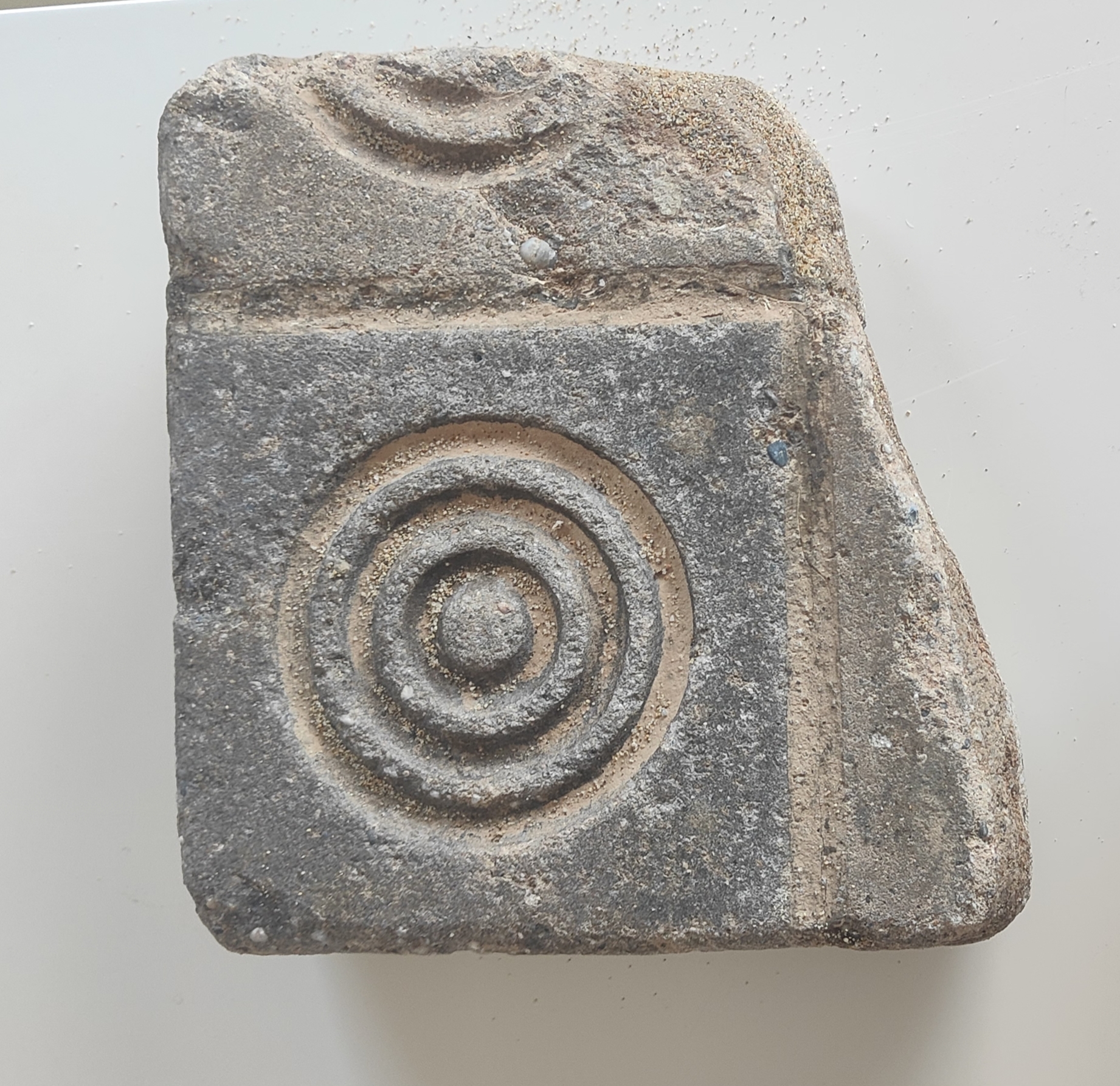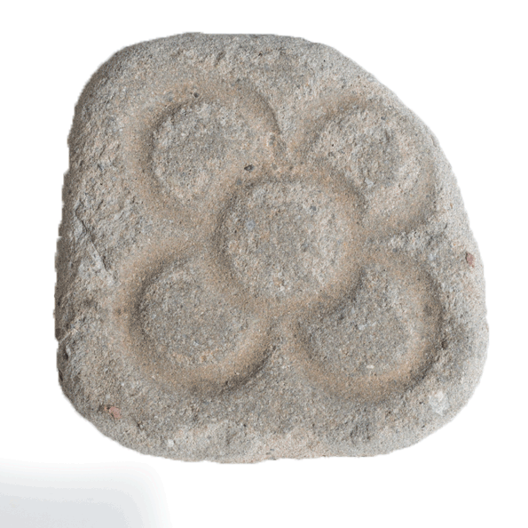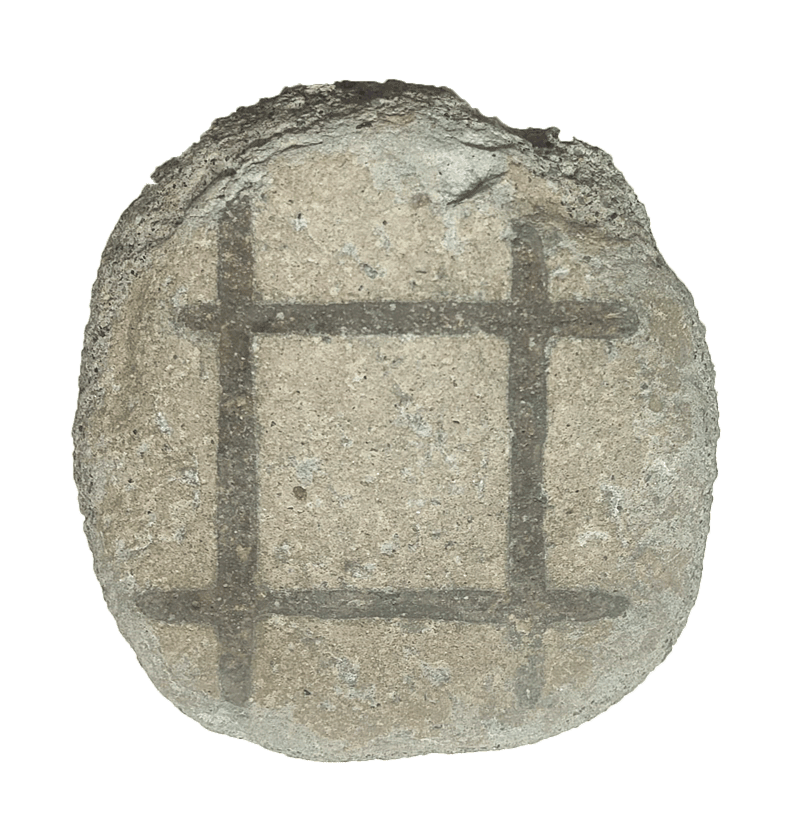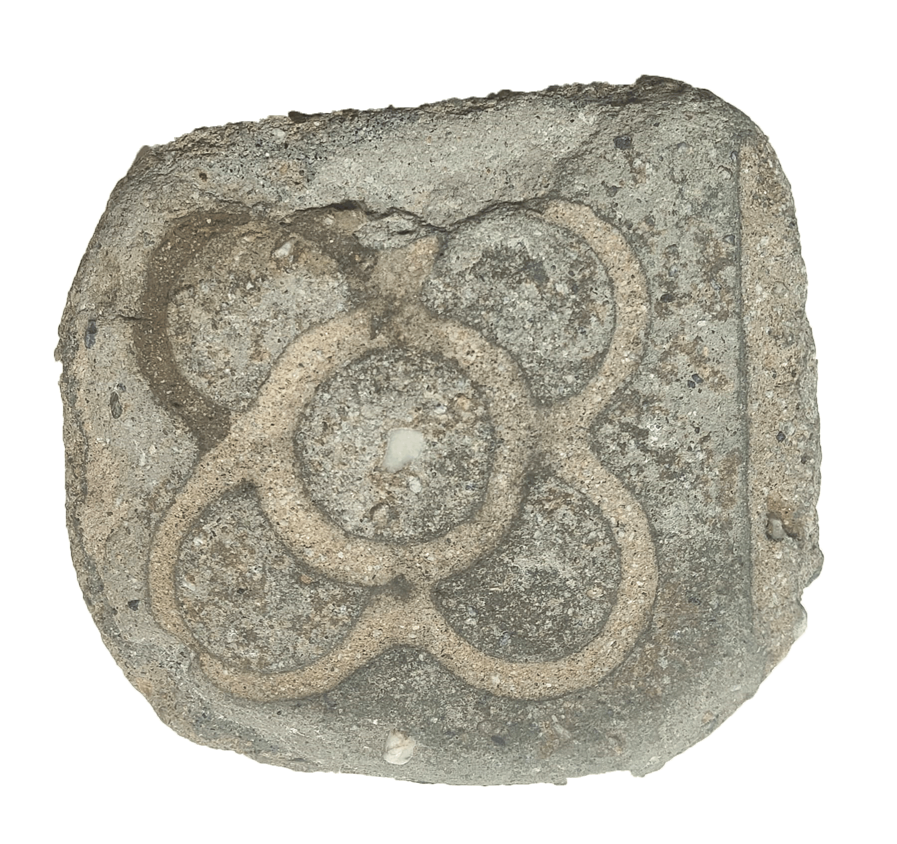 Recovered Panot from Barcelona’s shores, showcasing the distinctive Tauleta pattern with inner circles. The corners bear the marks of time with general wear. Small wear on the lower left part affecting the design
