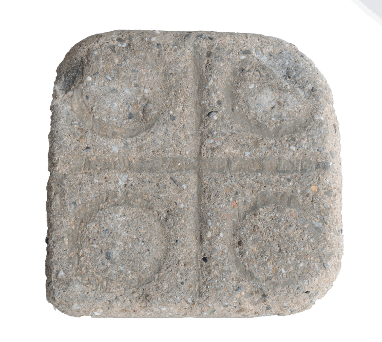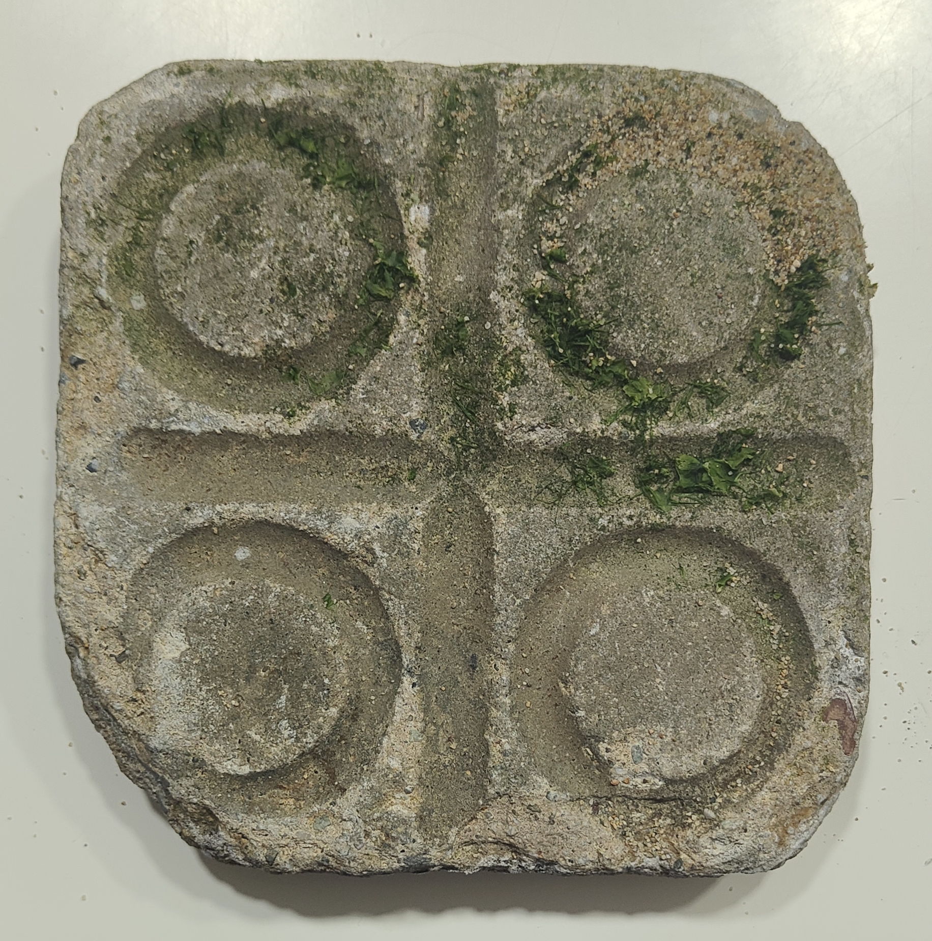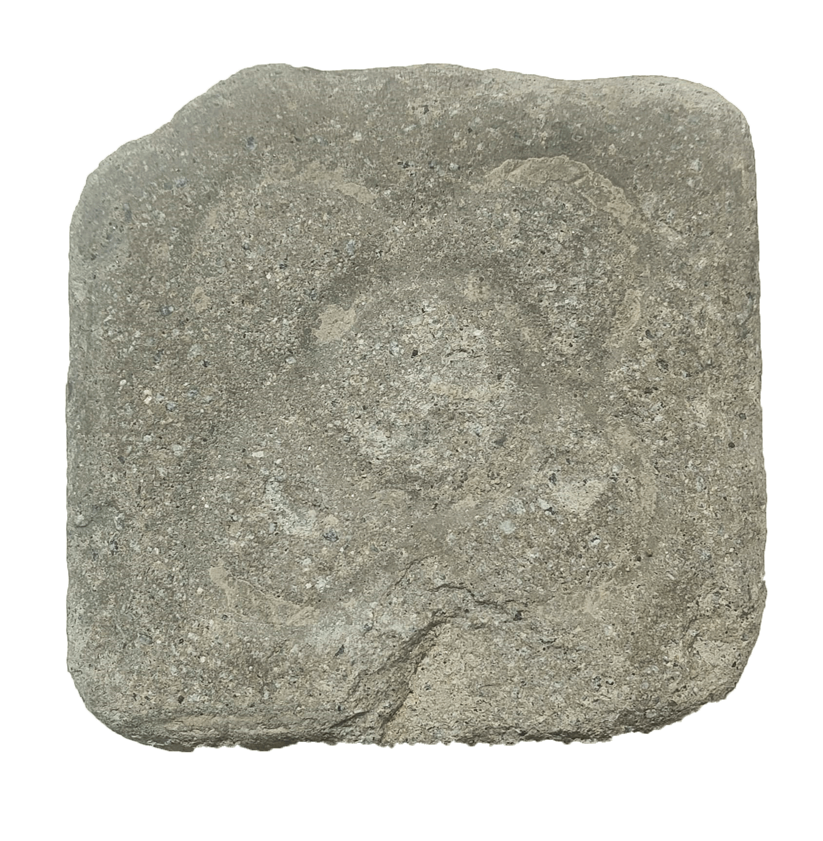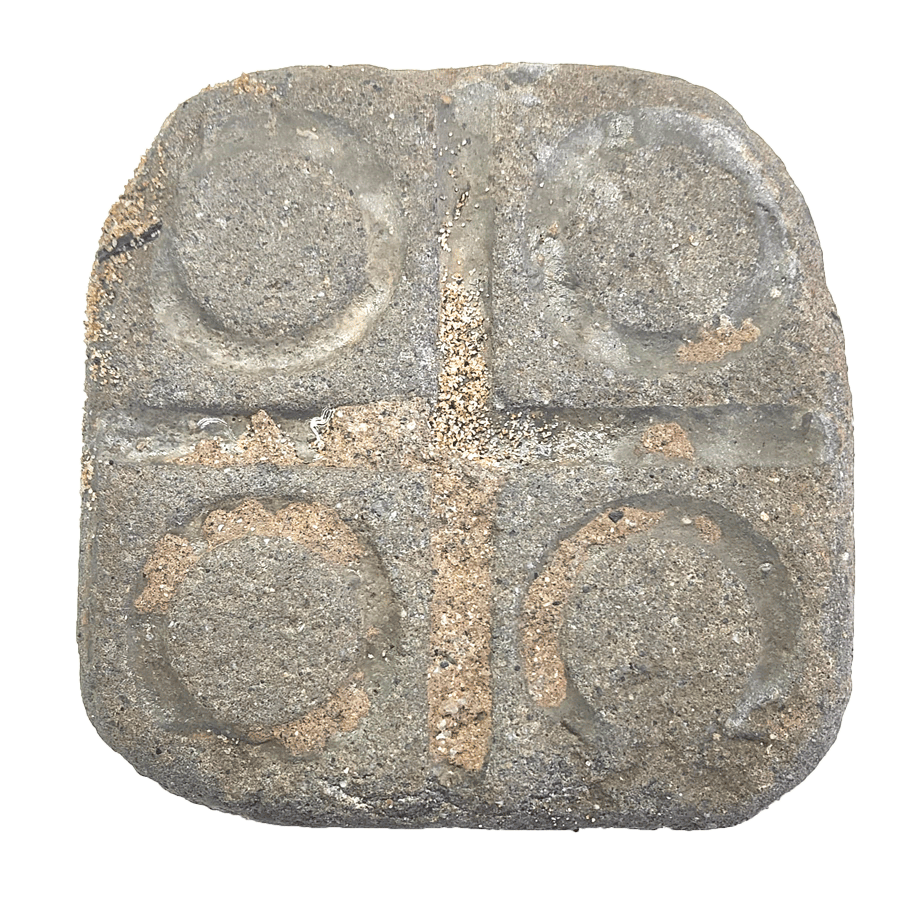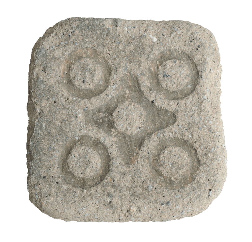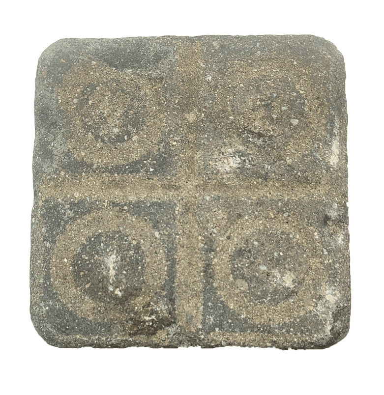 Original Panot from Barcelona, rescued from the city’s coastline, showcasing the iconic Tauleta design with inner circles. The designs on all four corners are eroded.