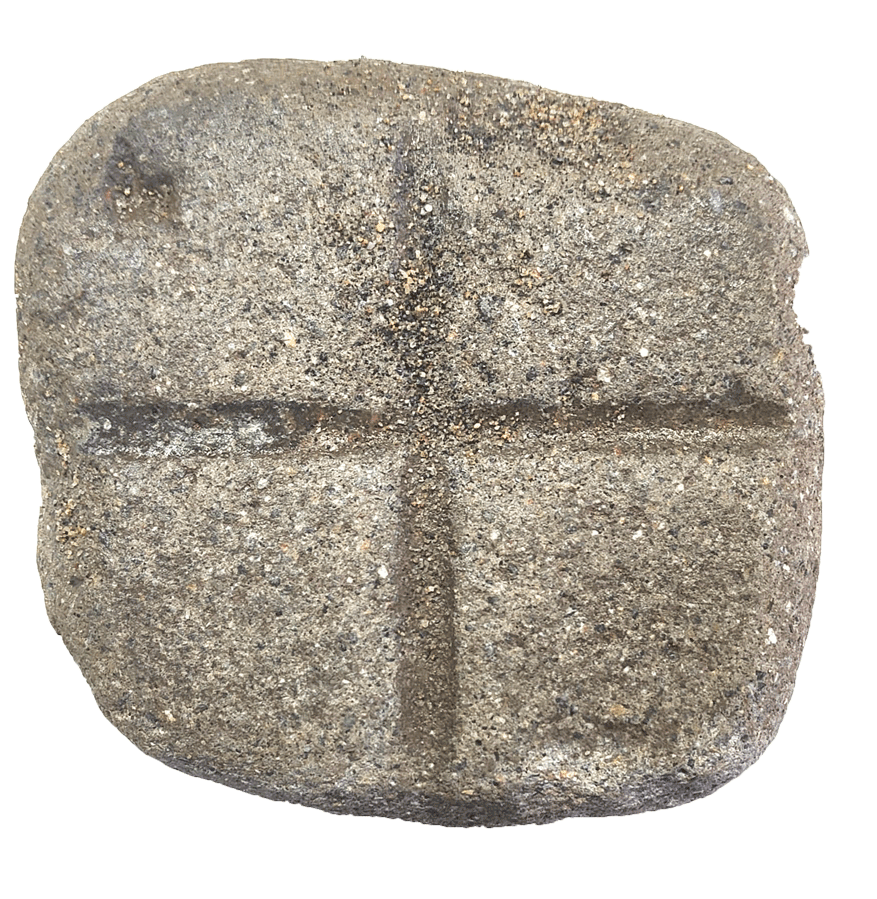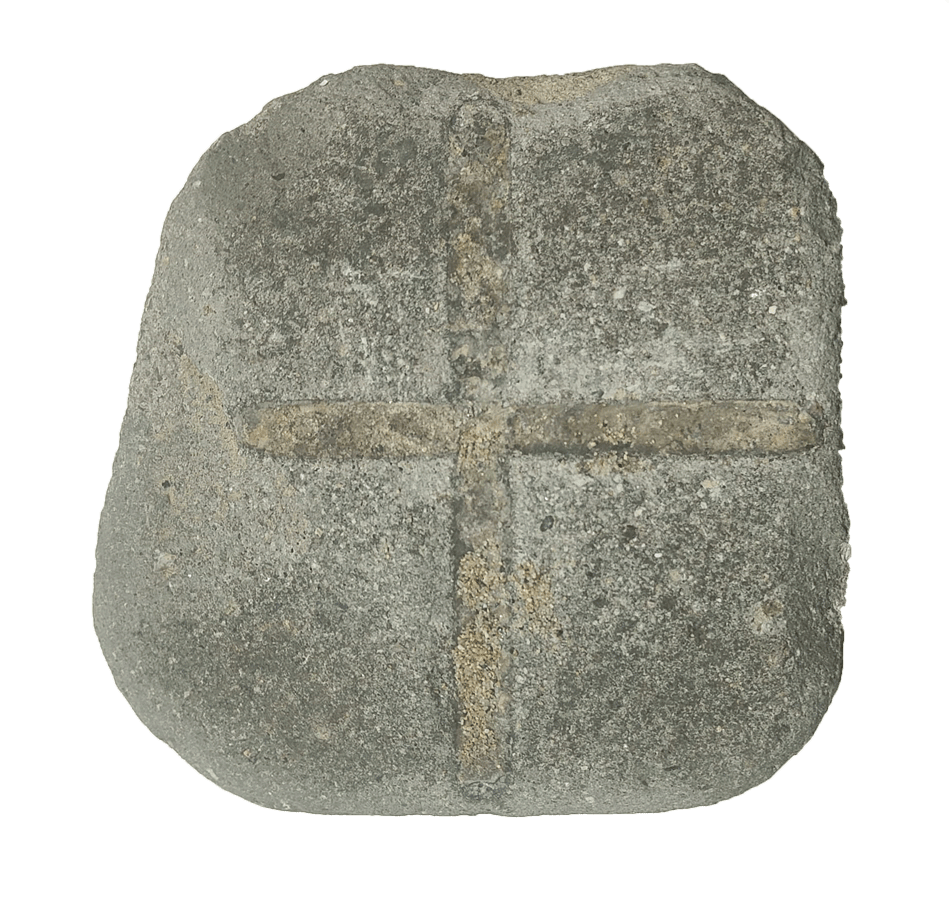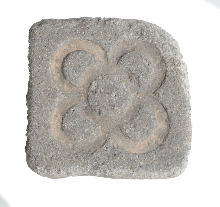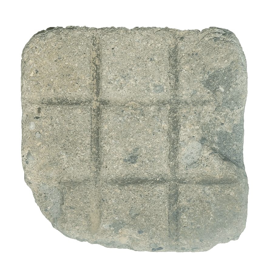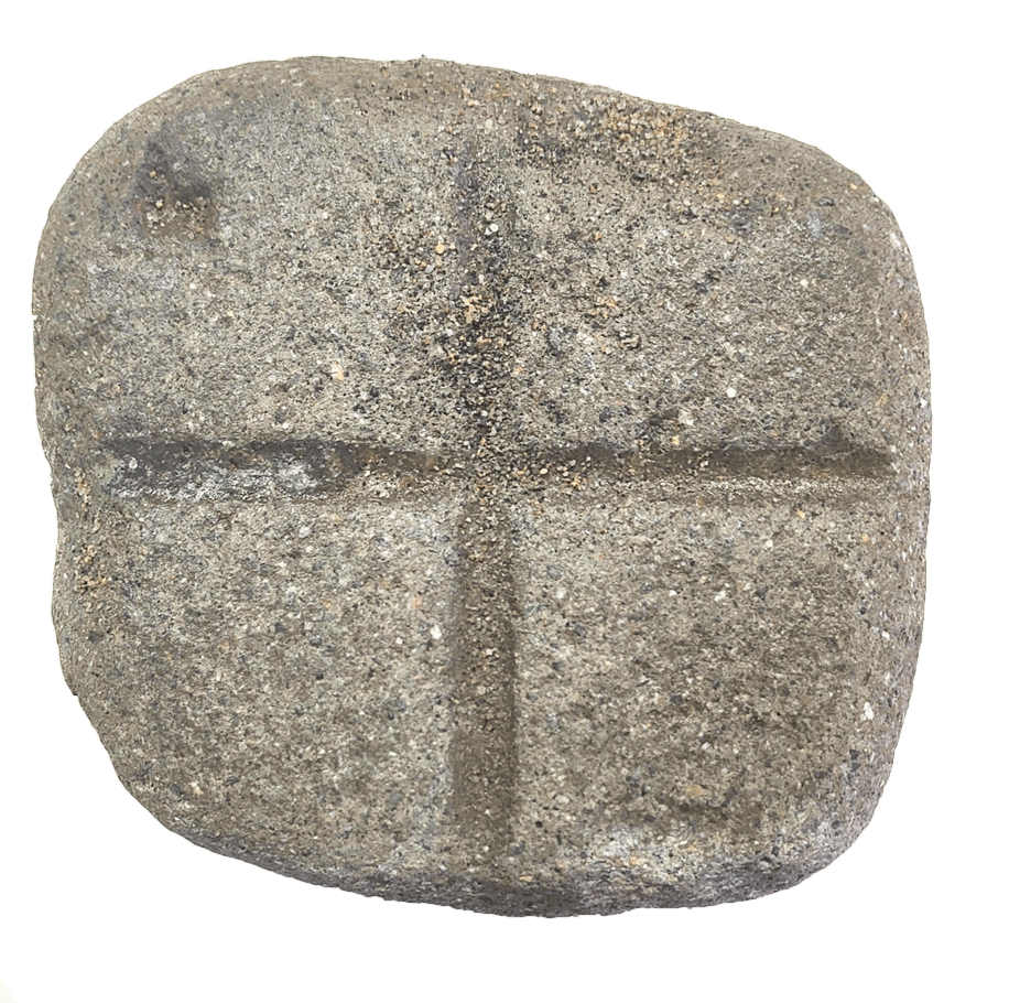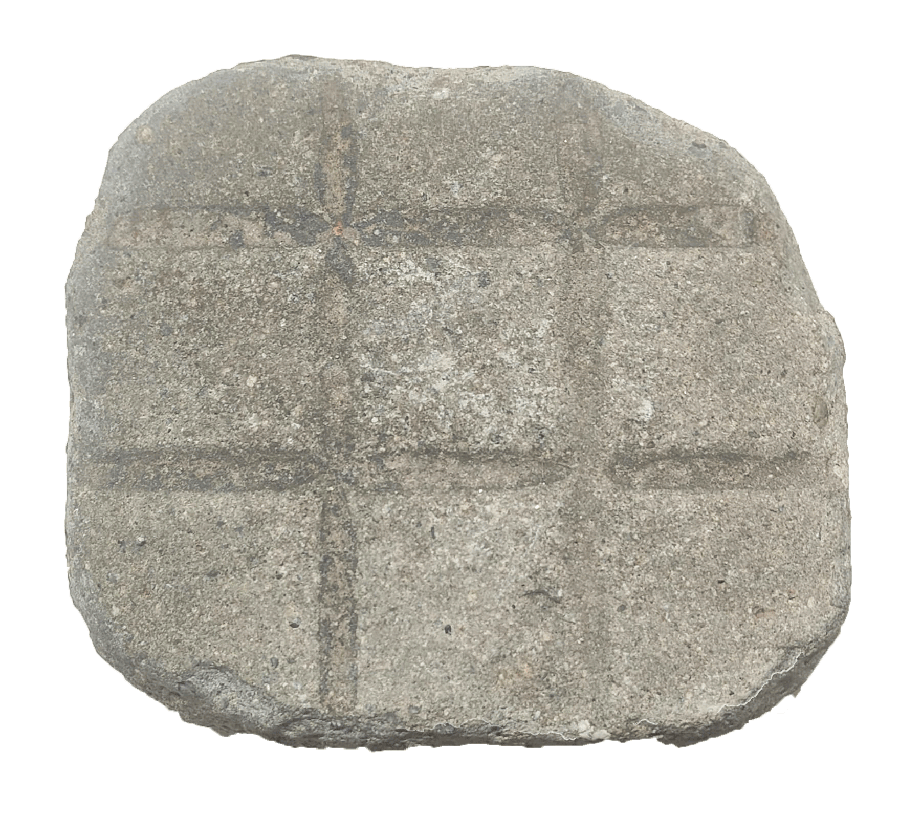 Original Panot from Barcelona, rescued from the city’s coastline, showcasing the iconic Tauleta design with inner circles. The designs on all four corners are eroded.