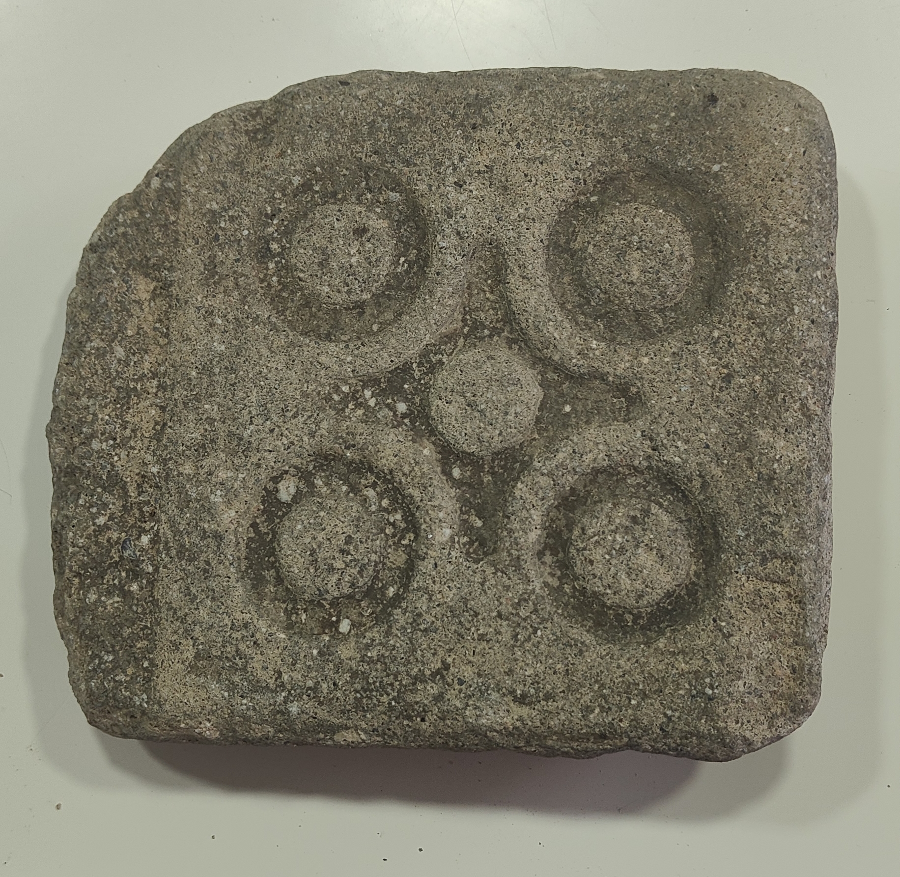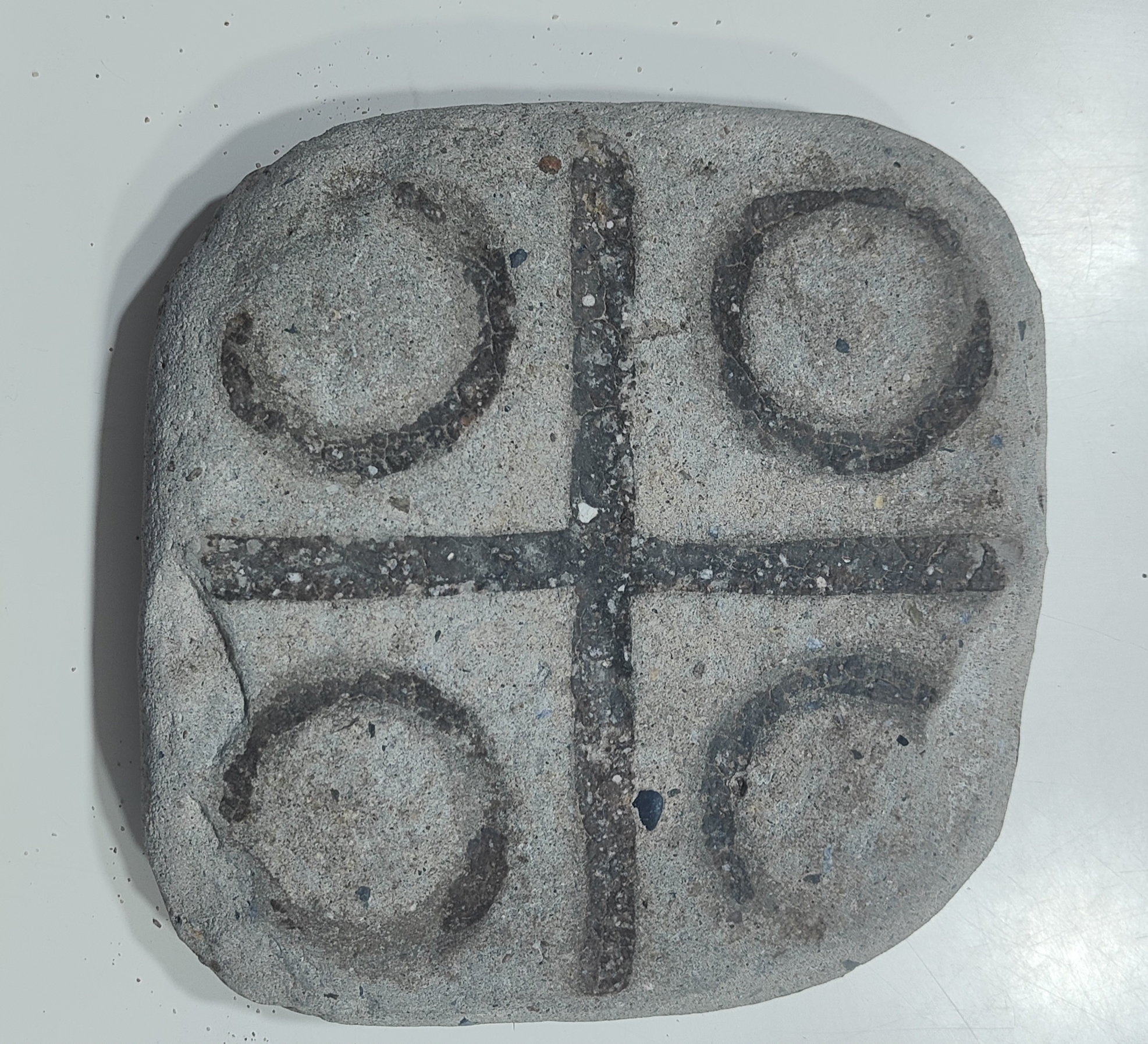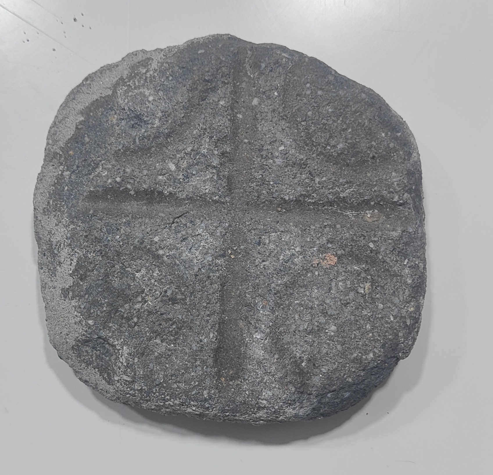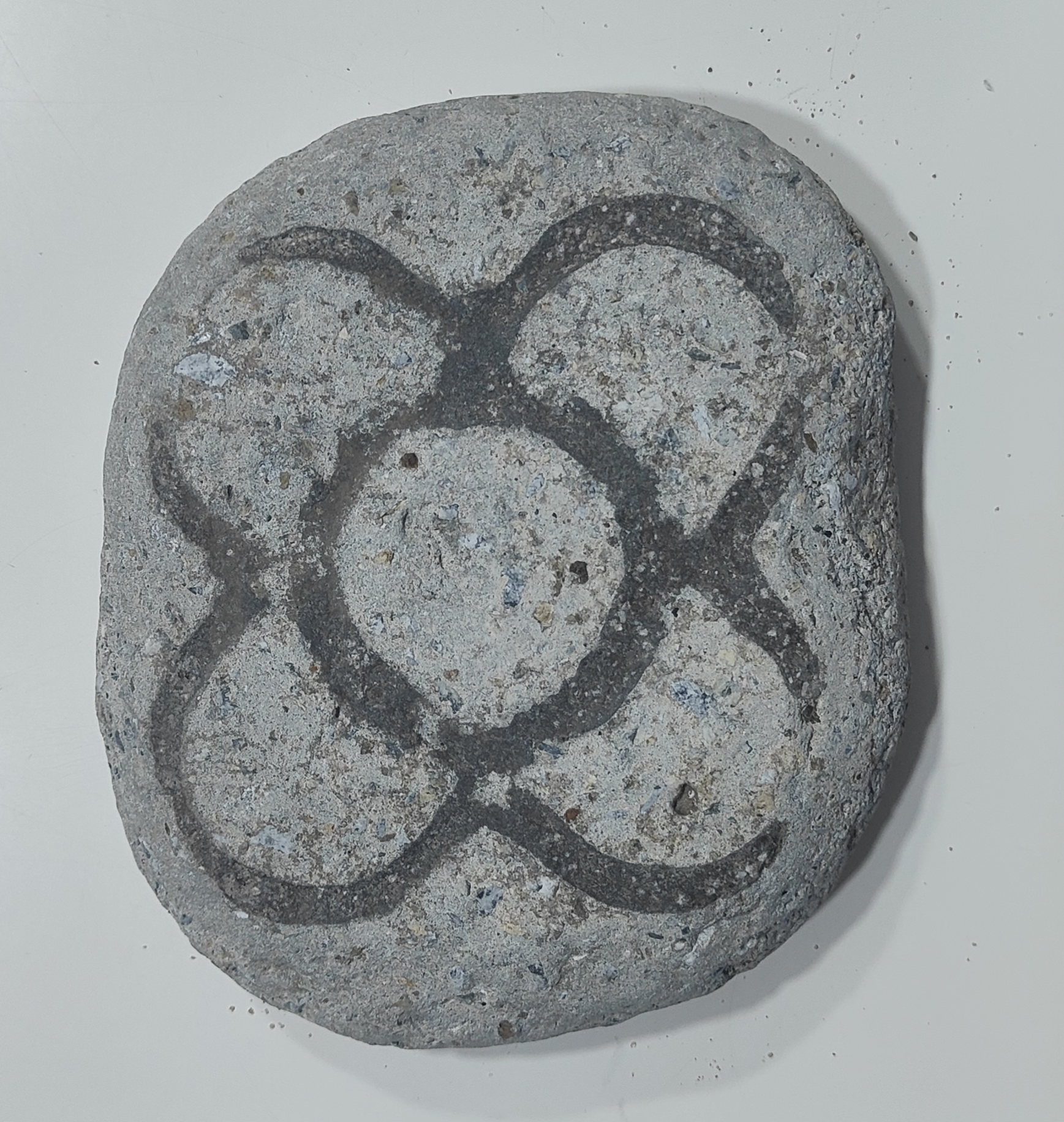 Original Panot from Barcelona, rescued from the city’s coastline, showcasing the iconic Tauleta design with inner circles. The designs on all four corners are eroded.
