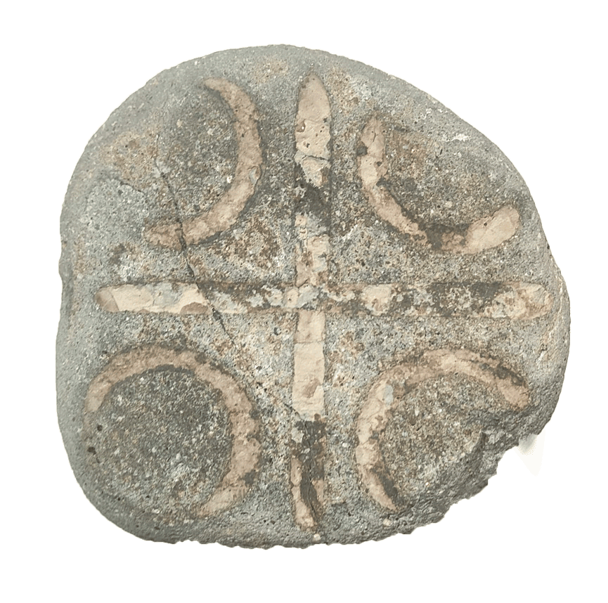 Genuine Panot from Barcelona, carefully recovered from the coastline, with the characteristic Tauleta design and inner circles. Upper part with a damaged design, lower part with slight wear on the left side