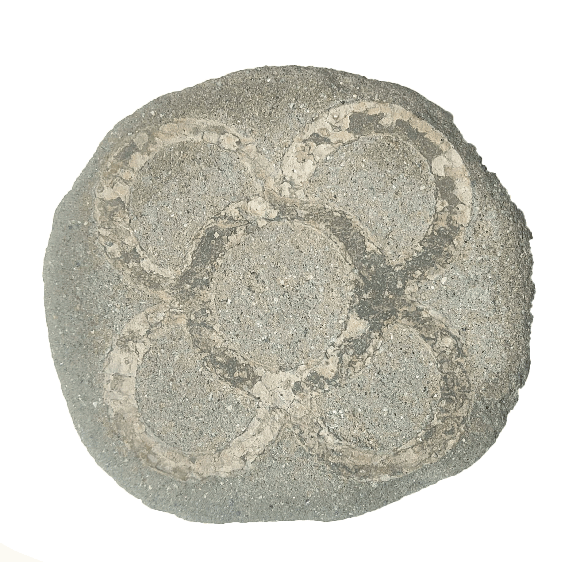 Original Barcelona Panot, retrieved from the coastline, featuring the classic Tauleta design with embedded circles. Loss on the lower left part, with half of the circle missing.