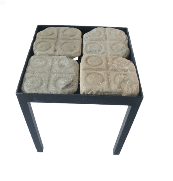 Small handcrafted side table made of varnished iron, designed to hold four Panots. Finished with a transparent glass top that showcases the tiles. You can choose the models, and we will prepare the table for you.