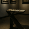 Small and original console table made of varnished iron, designed to hold three Panots. Finished with a transparent glass top that showcases the tiles. You can choose the models, and we will prepare the table for you.