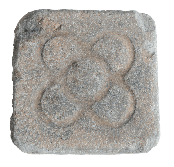 Original Panot showcasing the characteristic emblem of Barcelona, the flower design. Tiles discovered and reclaimed from the beaches of Barcelona, preserved in good condition with general wear on the corners. Small chips on the upper edges