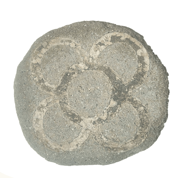 Original Panot with Barcelona’s distinctive emblem, the flower design. Tiles recovered and salvaged from the beaches of Barcelona. Very pronounced wear, giving the Panot a rounded shape, but keeping the design intact in the central part.
