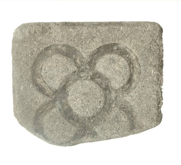 Original Panot with the famous emblem of Barcelona, the flower design. Tiles found and salvaged from the beaches of Barcelona. Loss of the lower part of the Panot, affecting the design