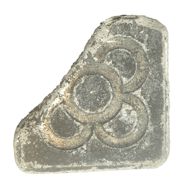 Original Panot with the emblematic design of Barcelona, the flower pattern. Tiles found and reclaimed from the beaches of Barcelona. Loss of the upper left edge and complete loss of one of the flower’s lobes.