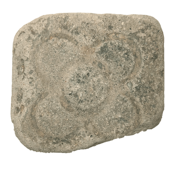 Original Panot with Barcelona’s signature emblem, the flower design. Tiles discovered and rescued from the beaches of Barcelona, preserved in good condition with general wear on the corners. Loss on the lower right edge with slight loss of the design.