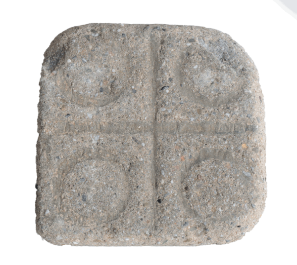 Authentic Barcelona Panot, retrieved from the waters off Barcelona’s coast, featuring the classic Tauleta pattern with inner circles. Corners well preserved, with the upper ones showing slightly more wear.
