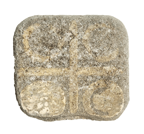 Barcelona’s original Panot, extracted from the coastal waters, carrying the timeless Tauleta engraving with inner circles. The corners show visible wear due to time and exposure.