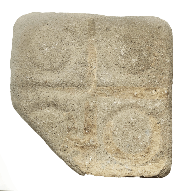 Original Barcelona Panot, retrieved from the coastline, featuring the classic Tauleta design with embedded circles. Loss on the lower left part, with half of the circle missing.