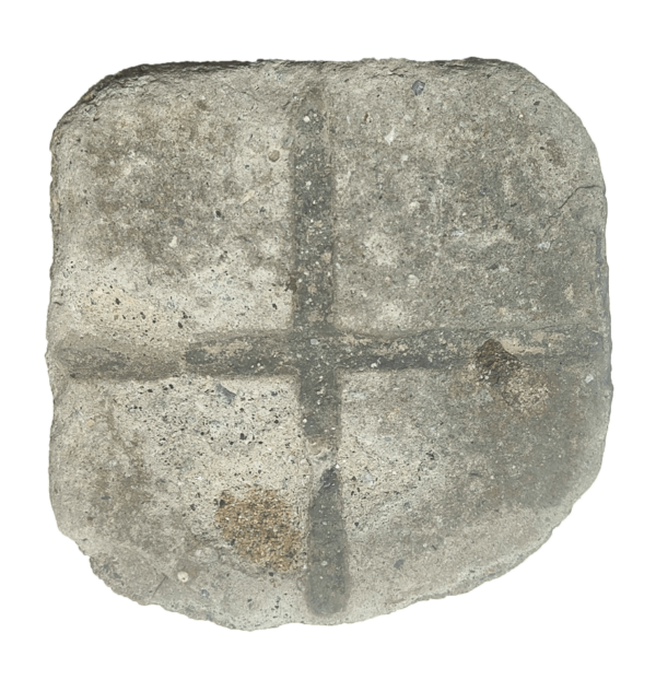 Historic Barcelona Panot, reclaimed from the sea, preserving the Tauleta design. Small erosions on the lower part of the Panot, with a missing section on the right edge