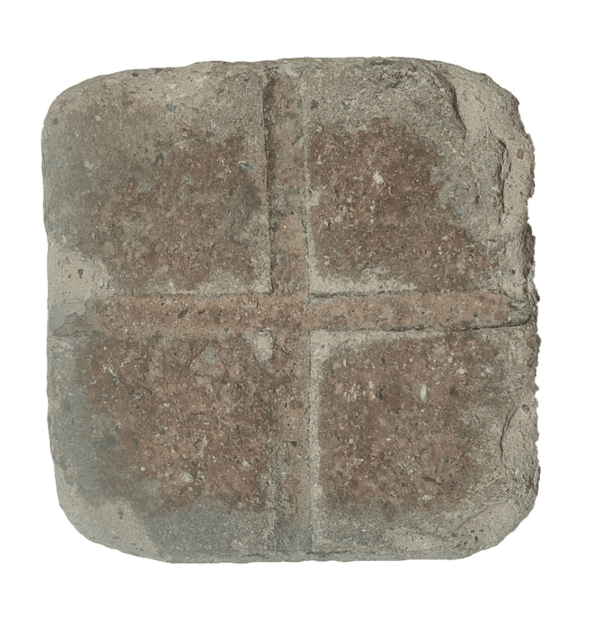 Barcelona Panot, retrieved from the depths of the sea, with its distinctive Tauleta pattern. All four corners are in regular condition, with a small chip on the upper right side